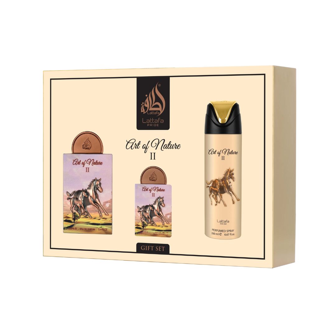 LAT-LATTAFA SET PRIDE ART OF NATURE II EDP 100ML+EDP 20ML+PERFUMED SPRAY 200ML+R