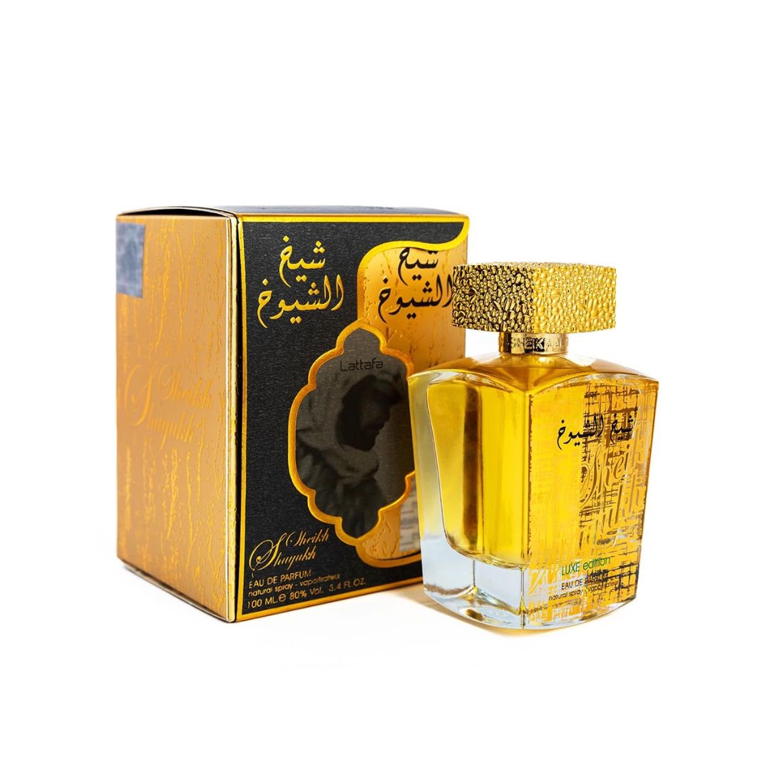 LATTAFA SHEIKH AL SHUYUKH LUXE EDITION 100 ML ES UNA FRAGANCIA LUJOSA QUE COMBINA ESPECIAS EXÓTICAS Y MADERAS, OFRECIENDO UNA EXPERIENCIA OPULENTA.