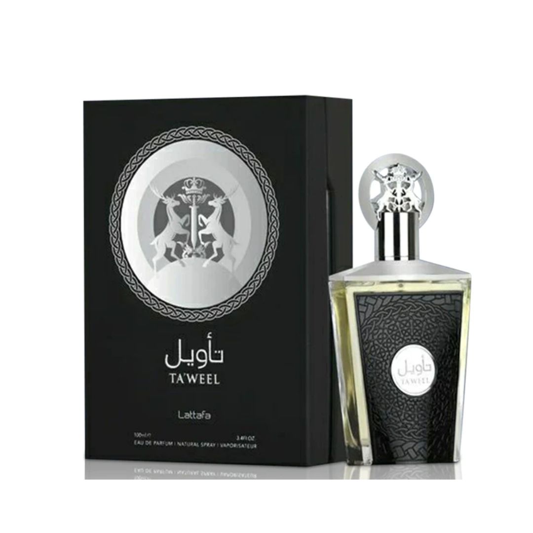 LATTAFA TAWEEL EDP 100 ML ES UNA FRAGANCIA MASCULINA ELEGANTE Y ENVOLVENTE, PERFECTA PARA HOMBRES QUE BUSCAN UN AROMA AUDAZ Y SOFISTICADO.