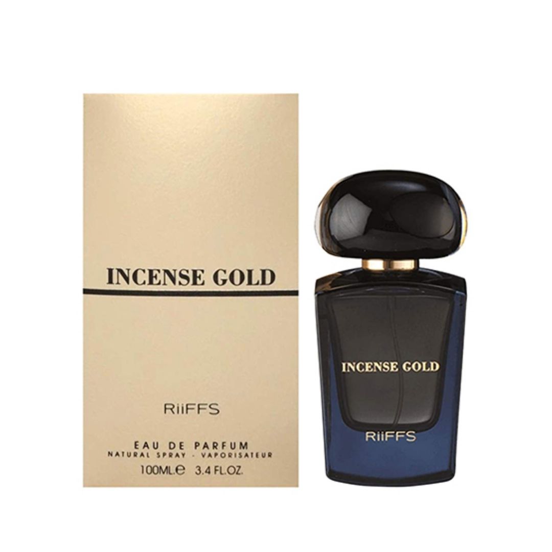 RIIFFS INCENSE GOLD EDP 100 ML ES UNA FRAGANCIA UNISEX CON AROMA A INCIENSO Y ESPECIAS, PERFECTA PARA EVENTOS ESPECIALES.