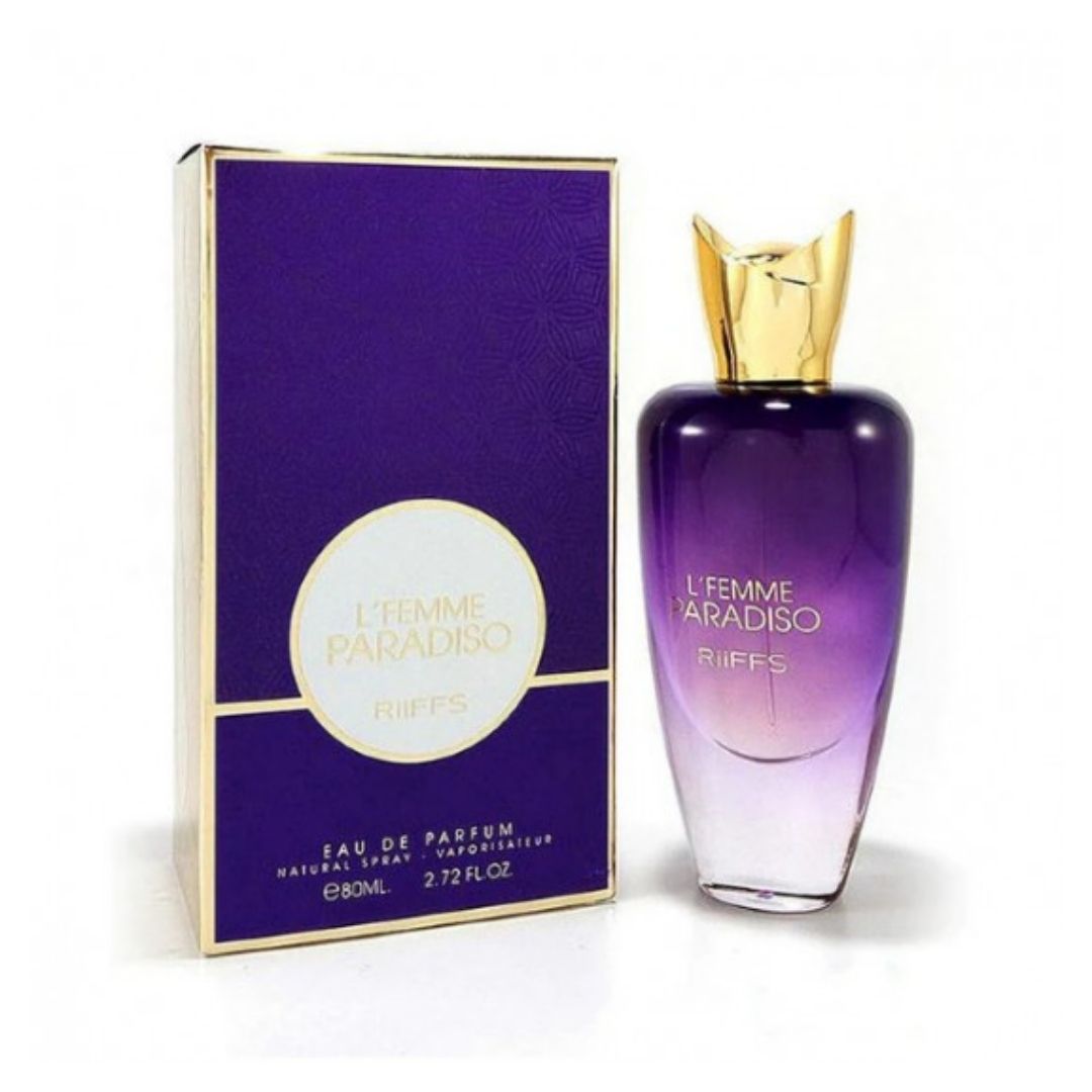 RIIFFS LFEMME PARADISO 100 ML ES UN PERFUME FEMENINO CON NOTAS FRESCAS Y ENVOLVENTES, IDEAL PARA EL USO DIARIO.